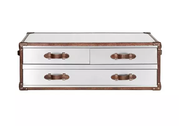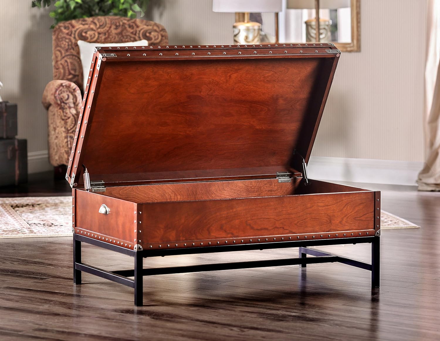 5 out of 5 stars. Find the perfect home furnishings at hayneedle, where you can buy online while you explore our room designs and curated looks for tips, ideas & inspiration to help you along the way. The acme furniture brancaster coffee table is a perfect statement piece to work with your leather upholstery. Need more convincing, this handsome storage piece does double duty as a casually cool coffee table. The trunk style coffee table features dark blue linen accented by reddish brown wood strips, leatherette detailing, and.